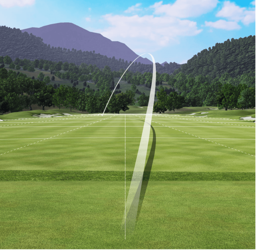2. Der Ball startet rechts vom Ziel und fliegt in einer Linkskurve weiter (diesen nennen wir mal bei starker Ausprägung „Hook“ und bei geringerer Ausprägung bezeichnen wir ihn als „Draw“)